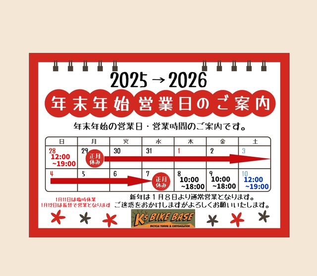 年末年始&1月の営業日のお知らせと美唄スノーサイクルレース参加者募集中!