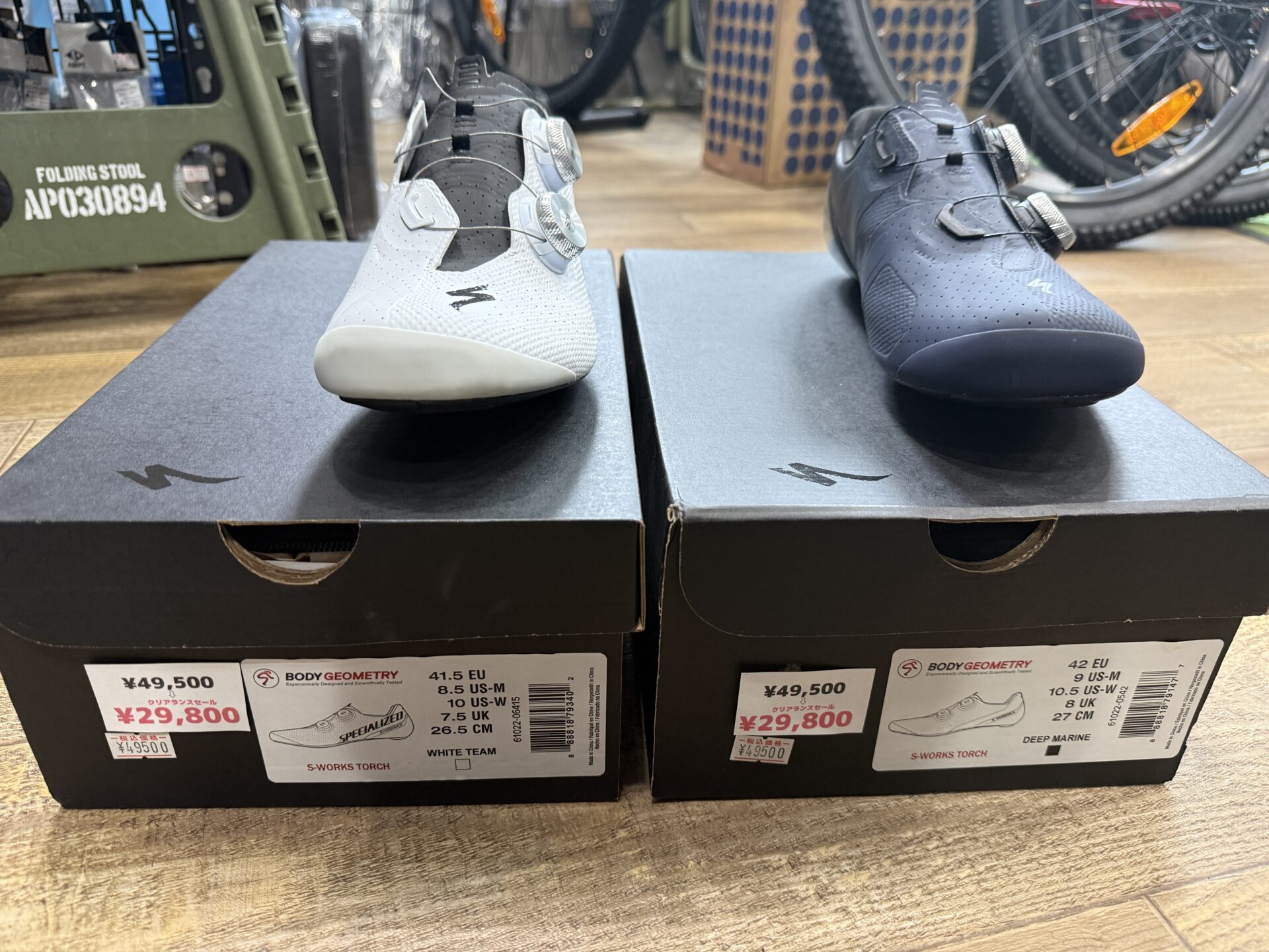 大人気ハイエンドモデル、S-WORKS TORCH (EU41.5 ホワイト/EU42.0 ディープマリーン)が定価の49800円からクリアランスセール、3周年セールを引くと